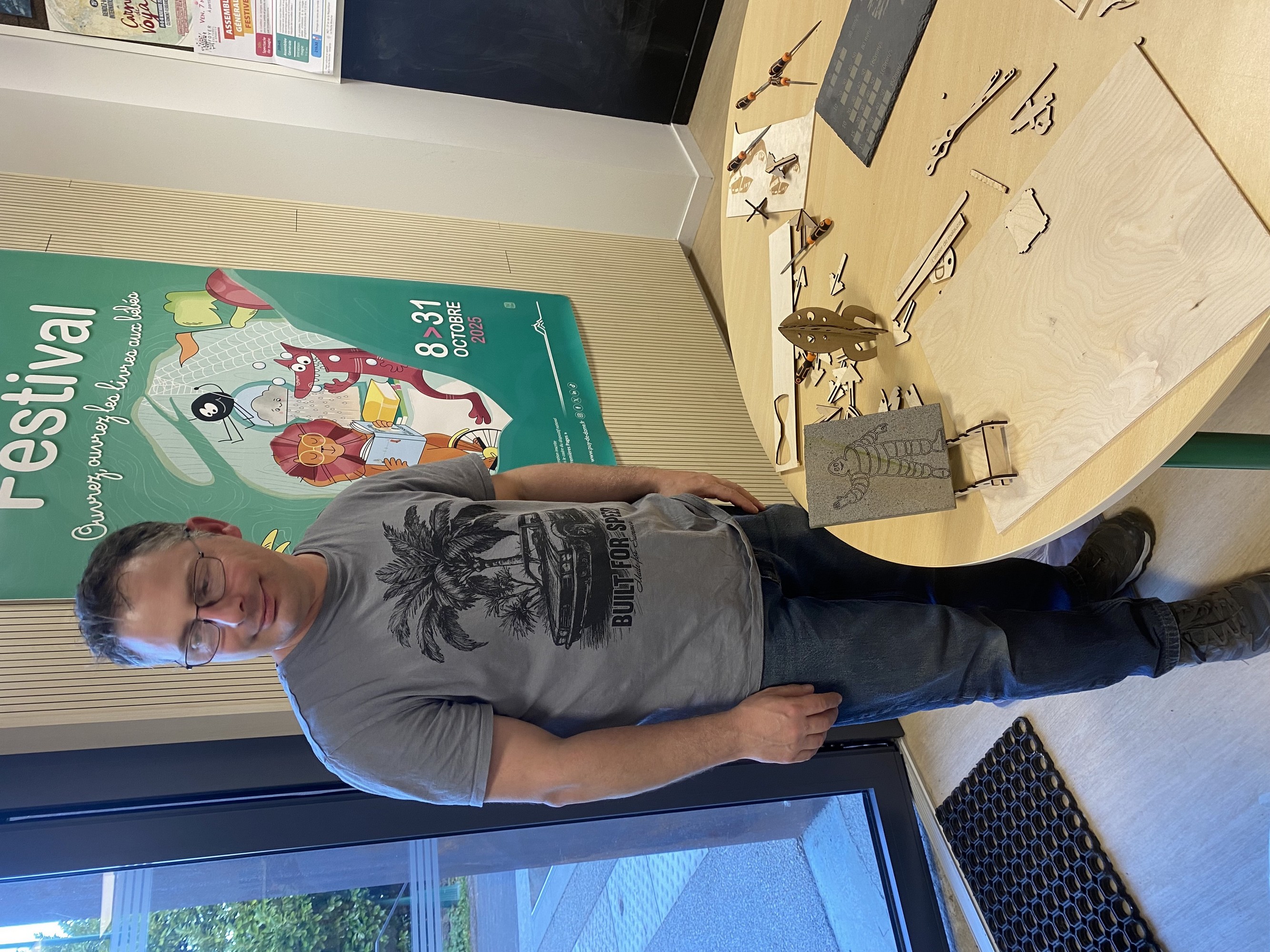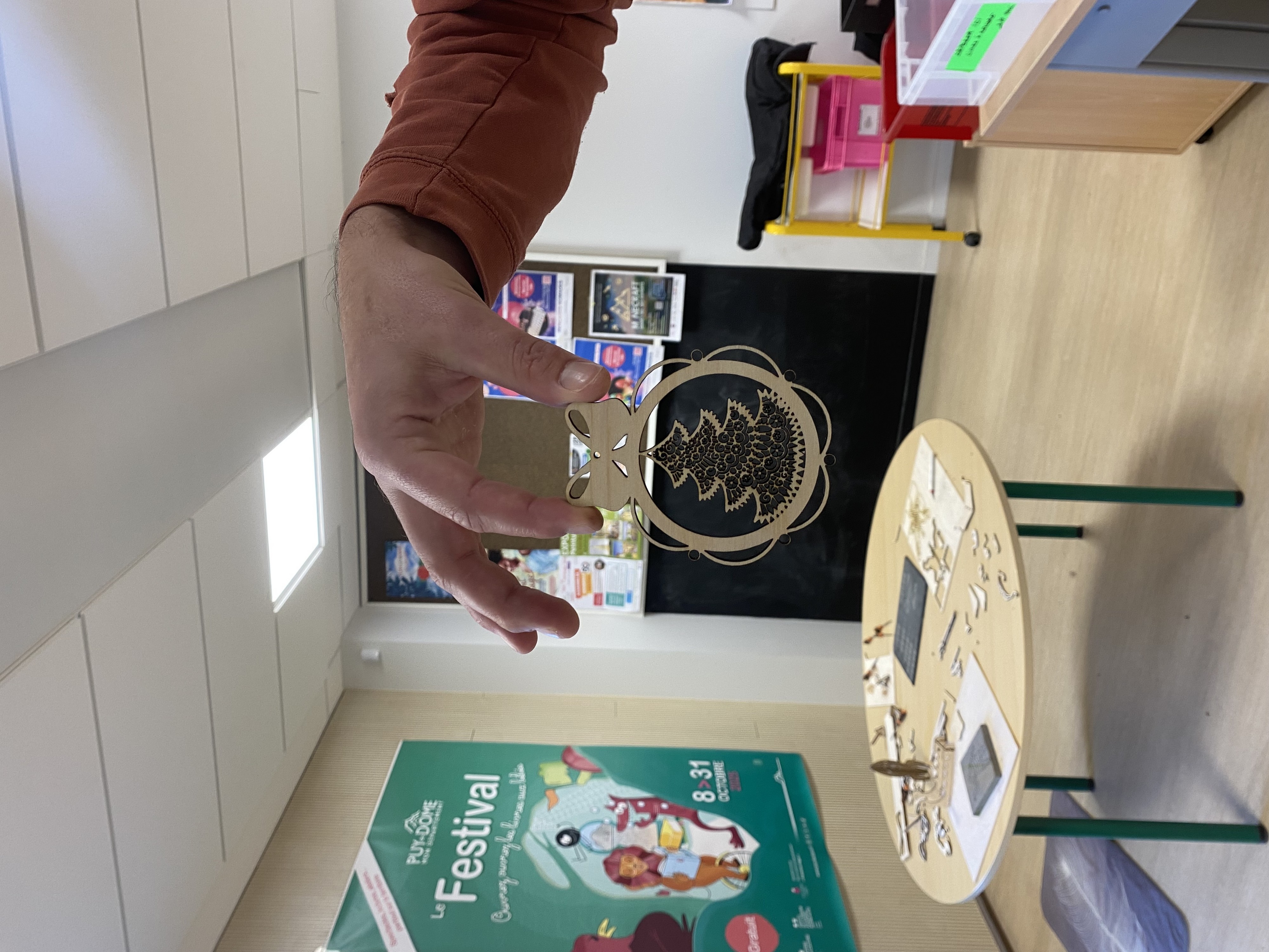 Atelier découpe laser du mercredi 5 novembre dans le cadre des Rencards Nomades du programme culturel du Mond'Arverne animé par Gael de l'atelier de Malauzat.